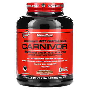 | ¡Carnivor ofrece más poder de nutrientes que construyen músculos que la carne! ¡350 % más proteína! ¡20 veces más creatina! ¡Sin grasa y sin colesterol! | ||
