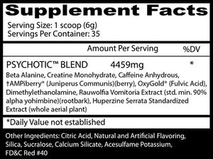 - Psychotic no es tu pre-entrenamiento normal. Comience con 1/2 cucharada para evaluar la tolerancia.